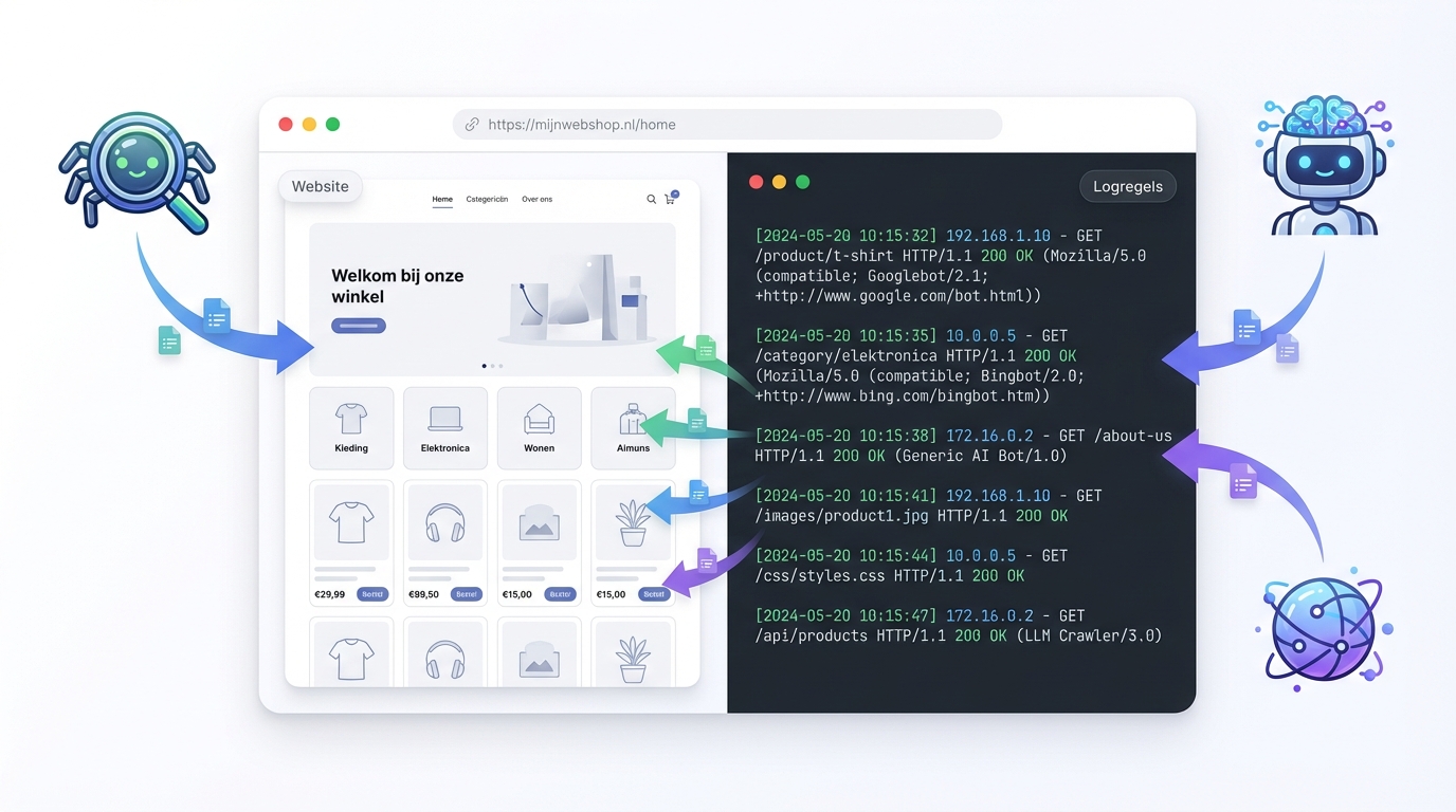 En het gaat allang niet meer alleen om Google. LLM-crawlers bepalen steeds vaker welke content in AI-antwoorden en assistants terechtkomt. Door in je logfiles te kijken welke AI-bots je site bezoeken, hoeveel ze crawlen en welke delen van je site ze wel of niet zien, krijg je grip op je “zichtbaarheid” buiten de klassieke zoekresultaten om.